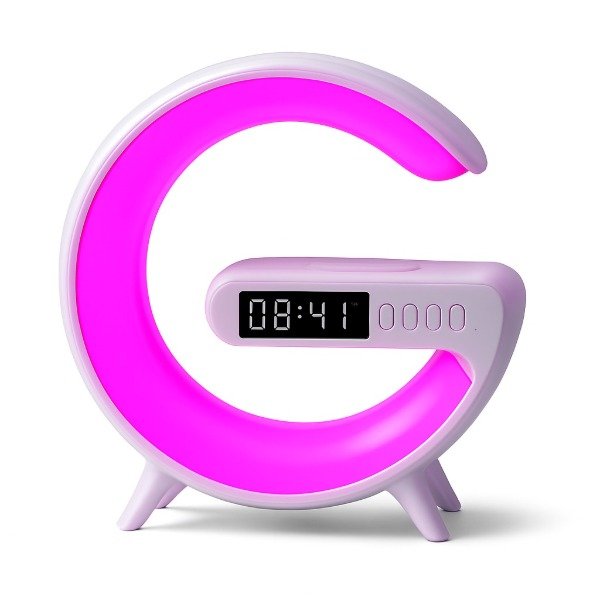 El Parlante en forma de G con luz LED y reloj digital es un dispositivo multifuncional que combina diseño moderno, sonido de calidad y funciones prácticas en un solo producto. Su estructura única en forma de “G” lo convierte en un objeto decorativo ideal para dormitorios, oficinas y espacios de relax.