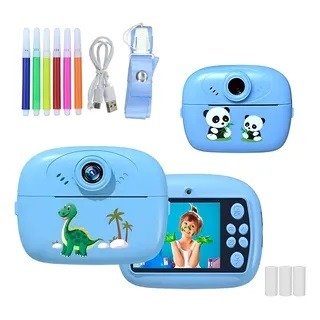 Cámara infantil con pantalla HD de 2,4”, impresión térmica instantánea, fotos hasta 40 MP, videos 1080P, marcos divertidos y fibras para colorear.
